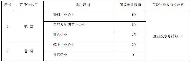 工業(yè)企業(yè)廢水氮、磷污染物間接排放限值