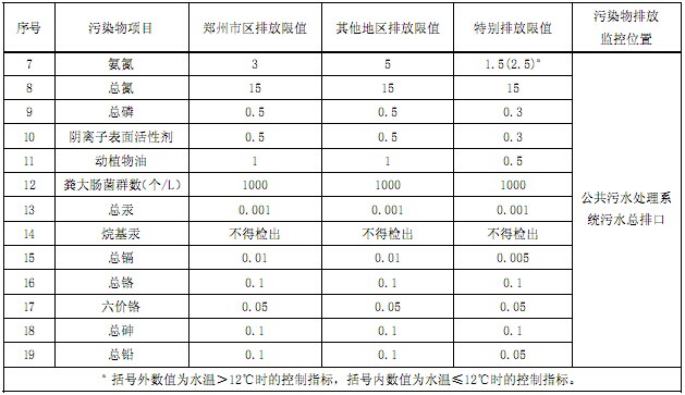 4.1新建公共污水處理系統(tǒng)自2014年6月26日起、鄭州市區(qū)現(xiàn)有公共污水處理系統(tǒng)自2016年7月1日起、其他地區(qū)現(xiàn)有公共污水處理系統(tǒng)自2016年1月1日起,水污染物基本控制項目排放限值執(zhí)行表1規(guī)定。