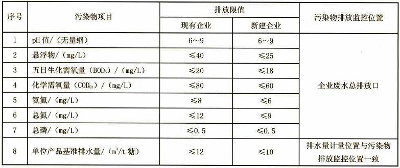 表1 甘蔗汁糖企業(yè)水污染物排放限值