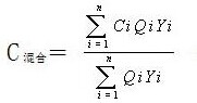 式中: C混合 ——混合污水某污染物最高允許排放濃度,mg/L;