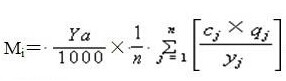 式中: Mi —— i污染物年排放量,kg/a; Cj —— 第j次監(jiān)測(cè)時(shí)的日平均排放濃度,mg/L; qj —— 第j次監(jiān)測(cè)時(shí)的日平均廢水排放量,m3/d; yj —— 某種工業(yè)產(chǎn)品在第j次監(jiān)測(cè)時(shí)的日產(chǎn)量,t/d; ya —— 某種工業(yè)產(chǎn)品當(dāng)年產(chǎn)量,t/a; n —— 本年度監(jiān)測(cè)次數(shù)。