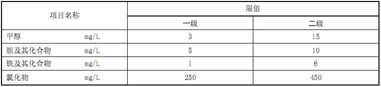 4.1.2.2第二類污染物最高允許排放濃度按照排水去向分為一級和二級,其中直接排入地表水體的污水執(zhí)行一級排放標(biāo)準(zhǔn),排入集中式污水處理廠的污水執(zhí)行二級排放標(biāo)準(zhǔn)。