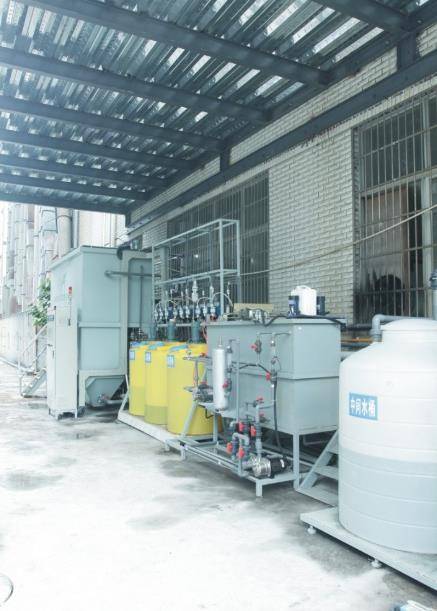 臨海市杜橋明宇光學(xué)眼鏡有限公司是一家專門從事眼鏡鏡片生產(chǎn),配件制造的生產(chǎn)企業(yè),該公司污水主要污染物為鏡片染色廢水,超聲波清洗廢水,塑料架振磨,板材架噴涂廢水。 本工程為其配置了40m3/d組合溶氣氣浮機+40m3/d獨立MBR系統(tǒng),該系統(tǒng)有三點獨立自動加藥系統(tǒng),觸摸屏+PLC智能測控,系統(tǒng)具備自動排泥、自動切換備用設(shè)備;實現(xiàn)系統(tǒng)運行參數(shù)全過程在線實時測控和無水、無藥、泵故障等自動停機報警系統(tǒng)。光學(xué)鏡片染色廢水色度>5000,CODcr大于1500-3000mg/L,廢水經(jīng)一級混凝氣浮+水解+MBR工藝后出水清澈,色度<2,CODcr<80mg/L。