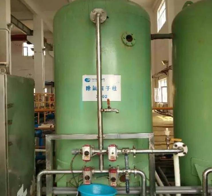 經過化學沉淀后的出水氟離子濃度在10-20mg/L,且不穩(wěn)定有時候會超過20mg/L,無法到達排放標準。此時,上清液經過收集后通過石英砂過濾器+碳濾+精密過濾器,濾掉大的懸浮物后,采用除氟特種樹脂工藝處理上清液以使氟離子降低到1mg/L以下。