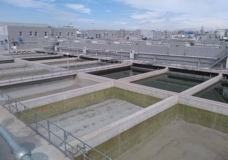 主體工藝:曝氣沉砂池+初沉池+曝氣池+二沉池+反硝化生物濾池+超濾膜過(guò)濾