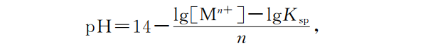 酸性廢水中的重金屬離子采用中和沉淀法處理,出水重金屬離子濃度與其溶度積Ksp和溶液pH有關(guān)[38]。根據(jù)公式