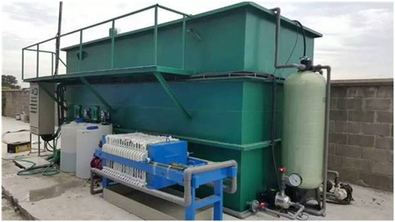 玻璃磨邊廢水,經(jīng)過格柵攔截去除大塊雜物,然后進調(diào)節(jié)池用污水泵將調(diào)節(jié)池污水輸送到污水處理設(shè)備中去,然后再添加不同藥劑、絮凝劑、PH值調(diào)節(jié)劑等,經(jīng)混合后的污水直接進入自行開發(fā)制造的高效分離凈化設(shè)備中,在設(shè)備罐體內(nèi)完成混凝、精細過濾和污泥濃縮收集全過程。