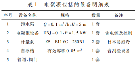 電絮凝裝置具體包括設備明細見表 1。