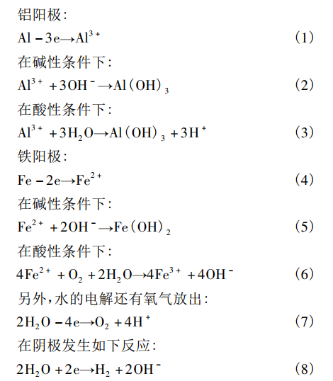 電凝聚法中常用的電極材料為鋁和鐵,在陽極和陰極之間通以直流電,發(fā)生的電極反應如下: