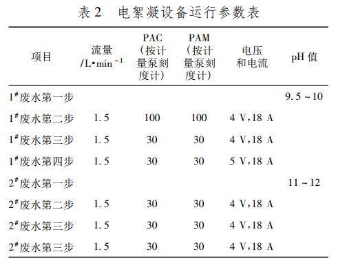 電絮凝設備運行參數(shù)見表2。