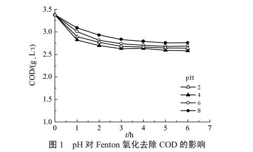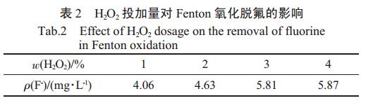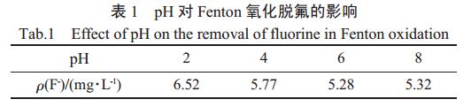 從而影響•OH的產(chǎn)生;而當(dāng)pH>4時,隨著pH的增加,H2O2在堿性條件下容易自身分解,抑制•OH的產(chǎn)生,且部分Fe2+會以氫氧化物沉淀,使得Fenton試劑氧化能力降低。綜合考慮,針對該含氟廢水適宜pH在4左右。