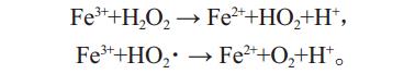 H2O2在Fe2+的催化作用下生成具有高反應(yīng)活性的羥基自由基•OH,•OH能有效氧化去除傳統(tǒng)廢水處理技術(shù)無法去除的難降解有機(jī)物,包括有機(jī)氟。當(dāng)pH<4時,溶液中的H+含量較高,會發(fā)生如下反應(yīng):