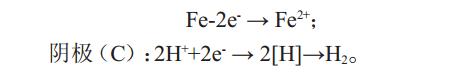 鐵碳反應(yīng)是在酸性介質(zhì)中進(jìn)行,其陽極(Fe)反應(yīng)式為: