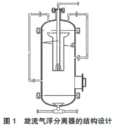 旋流氣浮分離器結(jié)合了旋流分離技術(shù)和氣浮分離技術(shù),流體經(jīng)過分離器時(shí),在分離器內(nèi)部機(jī)械結(jié)構(gòu)的作用下,水平切線運(yùn)動轉(zhuǎn)變?yōu)樾鬟\(yùn)動,其中密度相對較大的介質(zhì)會隨著外筒壁面向下運(yùn)動,密度相對較小的介質(zhì)會流向中心位置,向上運(yùn)動。根據(jù)氣浮分離的需要,在微氣泡發(fā)生器的作用下,含油廢水中加入微氣泡,氣浮和油滴碰撞結(jié)合后密度遠(yuǎn)小于油滴密度,聚合物向著軸心方向運(yùn)動。