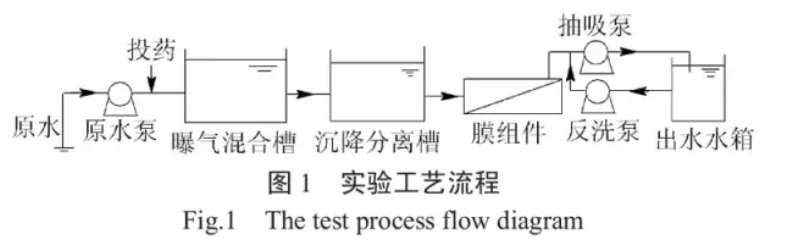 實(shí)驗(yàn)所使用的無機(jī)陶瓷平板膜由日本某公司提供,膜材質(zhì)為三氧化二鋁,膜孔徑為0.1μm,膜面積為0.04m²。過濾方式抽吸式,工作通量為1670L/(m²·h)(40m³/(m²·d))。膜片運(yùn)行周期為每抽吸11min反沖洗1min。整個(gè)工藝由PLC系統(tǒng)自動(dòng)控制。
