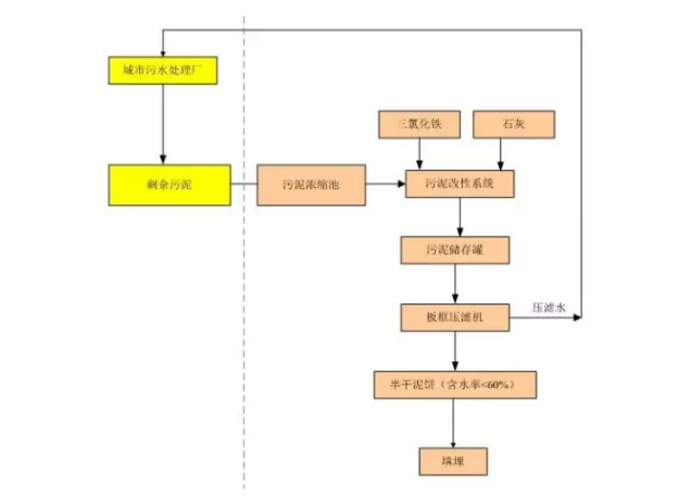 污泥化學(xué)改性+深度脫水技術(shù)是指對污泥進行調(diào)理,破壞細胞壁,釋放結(jié)合水、吸附水和細胞內(nèi)水,改善污泥的脫水性能,使脫水處理后的污泥含水率降低至60%以下的脫水方式。