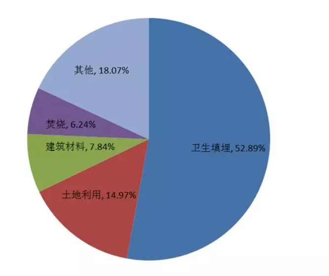 數(shù)據(jù)顯示(如下圖1所示),當(dāng)前全國(guó)污水處理廠產(chǎn)生的污泥,50%以上以衛(wèi)生填埋的方法進(jìn)行了處理處置,15%的污泥進(jìn)行了土地利用,6%的污泥以焚燒的方式進(jìn)行處理,8%的污泥經(jīng)處理處置后進(jìn)行了建筑材料利用,約18%的污泥去向不明。(注:之所以說(shuō)18%的污泥不知去向,是因?yàn)樵谡{(diào)研時(shí),此部分污泥產(chǎn)生量的單位在處置方式上選擇了其他處置方式的污水處理廠,很大程度上是對(duì)污泥進(jìn)行了不當(dāng)處置,去向不明)。一半以上的含水率80%的濕污泥采用了填埋的簡(jiǎn)易處置方式,這種方式是一種過(guò)渡性措施,二次污染的風(fēng)險(xiǎn)嚴(yán)重,而且,目前很多地方已經(jīng)沒(méi)地可埋。