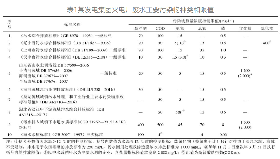 表1某發(fā)電集團(tuán)火電廠廢水主要污染物種類和限值