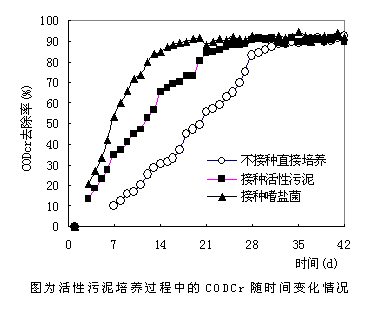 主要原理可能是Na+/K+反向轉運功能。細菌的生長雖然需要高鈉的環(huán)境,細胞內的Na濃度并不高,如鹽桿菌光介導的H+質子泵具有Na+/K+反向轉運功能,即具有吸收和濃縮K+和向胞外排放Na+的能力. K+作為一種相容性溶質,可以調節(jié)滲透壓達到細胞內外平衡,其濃度高達7mol/L,以維持內外同樣的水活度.例如嗜鹽厭氧菌、嗜鹽硫還原菌及嗜鹽古菌是采用細胞內積累高濃度K+來對抗胞外的高滲環(huán)境.例酵母中的Na+/K+反向載體可以將多余的鹽分排出體外,提高酵母的耐鹽性. 5.5 選擇合適處理工藝 不同的處理工藝影響微生物的耐鹽范圍。以下為報道的幾種生物處理方法中NaCl濃度的限制量