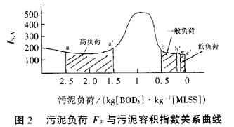 污泥負(fù)荷Fw與污泥容積指數(shù)Is,v的關(guān)系曲線見圖2。