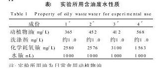 所采的廢水成份不一定相同,不能代表不同條件下的情況,且干擾因素較多,所以試驗用廢水除了取自不同餐飲業(yè)外,還配制了模擬廢水,試驗水樣為:其中1#、2#、3#水樣分別取自不同大酒店。4#水樣為根據(jù)餐飲業(yè)廢水的性質(zhì),在實(shí)驗室中配制[1]而成。水樣分析結(jié)果見表1。