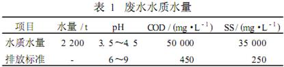 該企業(yè)廢水主要來自于粗餾塔酒糟廢水、精餾塔余餾水等廢水,廢水水質和水量如表1所示。設計出水水質須達到當?shù)爻鞘形鬯幚韽S接管標準。