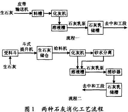 硫酸廢水中和處理常用的石灰消化工藝如圖1。