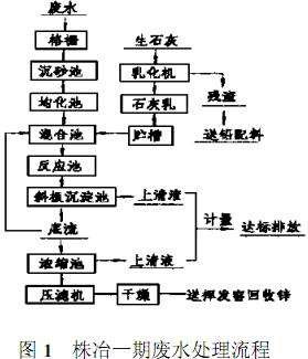株洲冶煉廠是我國目前最大的鉛鋅冶煉企業(yè)之一,主要生產(chǎn)鋅、鉛、銅、鎘及鋅合金、硫酸等產(chǎn)品。其鋅冶煉系統(tǒng)采用傳統(tǒng)的沸騰焙燒-兩段浸出-凈液-電積工藝,因此生產(chǎn)過程產(chǎn)生大量含鋅、鉛、銅、鎘、汞、砷等有毒重金屬的酸性廢水。隨著新建10萬t/a電鋅系統(tǒng)的投產(chǎn),排放廢水量越來越大,各種酸性廢水經(jīng)明溝混合后一并進入廢水處理車間。重金屬酸性廢水采用消化石灰乳中和(污泥回流)-沉降處理工藝,處理能力為800~1200m3/h。處理后廢水基本達標排放。1996年完成鋅系統(tǒng)擴建后,同時還上馬了年產(chǎn)18萬t硫酸的系統(tǒng),與此相配套,新建了廢水綜合治理二期工程,包括污酸廢水處理系統(tǒng)、廢水處理后凈化水回用等設(shè)施。