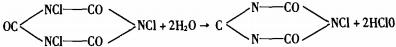 (3)三氯異氰尿酸(強氯精):縮寫為TCCA。分子式為:C3O3N3Cl3三氯異氰尿酸也是白色結(jié)晶物質(zhì),伴有很強的氯臭味,有效氯含量90%以上,是目前市面上含氯消毒劑中氯含量最高的產(chǎn)品。比重0.96,在水中的溶解度為1.2克/100克,遇酸、堿易分解。溶于水中也能產(chǎn)生次氯酸,反應(yīng)式為: