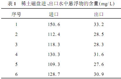 對稀土磁盤進、出口水中懸浮物的含量進行測定,其結(jié)果如表1所示: