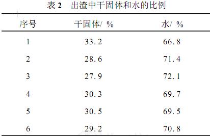 同時,對出渣中干固體和水的比例進行了測定,其結(jié)果如表2所示。