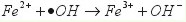 表1是對(duì)應(yīng)結(jié)晶紫在不同條件下降解80min后剩余的COD?芍Y(jié)晶紫在紫外光下比較穩(wěn)定(曲線a),而Fe3+的存在能部分破壞染料分子的共軛結(jié)構(gòu)而脫色,80min脫色率大于40%(曲線b),這是因?yàn)镕e(Ⅲ)的羥基絡(luò)合物光解產(chǎn)生高活性的·OH(反應(yīng)式1),同時(shí)還存在染料本身的敏化作用[9](反應(yīng)式2-4),但是反應(yīng)的總量子產(chǎn)率不高,而且缺少Fe(Ⅲ)再生的機(jī)制,因此脫色效率不高,也不能徹底降解染料(COD幾乎不變)。UV/H2O2體系能使結(jié)晶紫較快地脫色(曲線c),這是因?yàn)镠2O2的光解會(huì)產(chǎn)生·OH(反應(yīng)式5),但是由于·OH容易復(fù)合失活,導(dǎo)致降解速度和礦化效率不高,80min后剩余的COD變大,這是因?yàn)樯傻拇罅啃》肿又虚g產(chǎn)物不能進(jìn)一步完全礦化,致使水樣COD增高,文獻(xiàn)[10]觀察到類似現(xiàn)象。