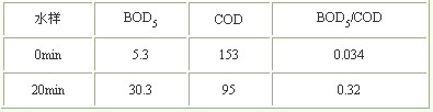 表4 氧化前后水樣的可生化性
