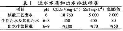 江陰市某生物有限公司廢水水質(zhì)情況如表1所示.核酸工藝廢水水量為80。生活及其他污水水量為200t/d。