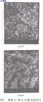 2)吸附架橋作用:發(fā)酵液中的蛋白質、多肽和多糖等物質均為半剛性長鏈大分子,投加到水中充分伸展,具有較大空間體積,對水中懸浮粒子具有吸附架橋作用.由掃描電鏡照片(圖2)可以清晰地觀察到,絮凝菌在發(fā)酵過程中分泌大量的黏液性物質,對水中懸浮顆粒具有一定的吸附作用.