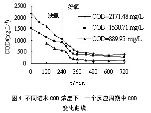 2.2不同進水COD對SBR反應的影響