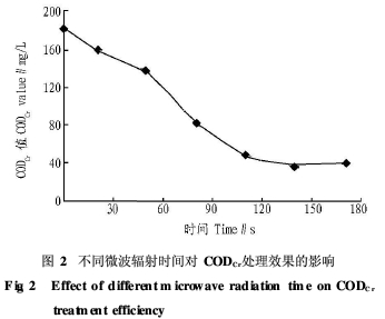 2.1 不同微波輻射時(shí)間對(duì)CODCr的處理效果