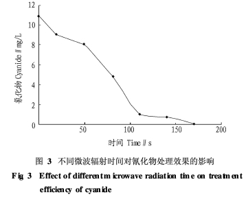 2.2 不同微波輻射時(shí)間對(duì)氰化物的處理效果