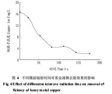 2.3 不同微波輻射時(shí)間對(duì)重金屬銅的去除效果