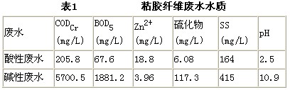 在南平天元化纖廠現(xiàn)場(chǎng)進(jìn)行了粘膠纖維廢水的中試,原水水質(zhì)情況見表1。