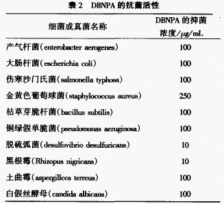 美國DOW化學(xué)公司研究人員對(duì)該物質(zhì)的殺菌性能進(jìn)行了測(cè)試,測(cè)得DBNPA的抗菌活性如表2[6].