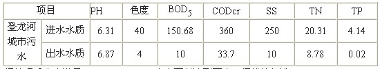污水中CODcr去除的原理與BOD5基本相同,但CODcr的去除率與落水村生活污水的組成有關(guān)。對于那些主要以生活污水及其成分與餐飲廢水組成的綜合污水,BOD5/CODcr比值往往接近0.5甚至大于0.5,出水中CODcr值可控制在較低的水平。而成分主要以工業(yè)廢水為主的城市污水,其BOD5/CODcr比值較小,其污水的可生化性較差,此類污水,采用硅藻精土水處理劑,并使用高效水力循環(huán)澄清池污水處理設(shè)備,將充分發(fā)揮該工藝強于其他工藝的突出特點,處理后污水中殘存的CODcr將獲得最高的效果,去除率在90%以上,甚至在95%以上。大理登龍河工程進(jìn)出水指標(biāo)測試結(jié)果如下:
