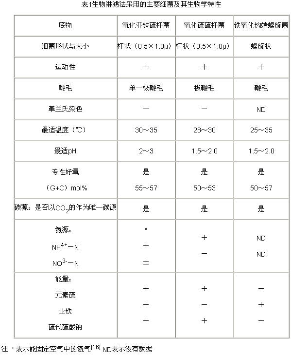 1 生物淋濾法采用的主要細(xì)菌及其生物學(xué)特性