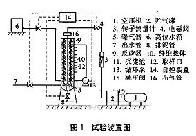 裝填密度是指生物膜與載體所占容積與整個反應器容積之比。在分別做了最大裝填密度:37.5%、實用裝填密度:30%以及較低裝填密度:22.5%的對比試驗后,確定較適宜的裝填密度為30%。此時,反應器中的纖維載體的比表面積為2.66m2/L。