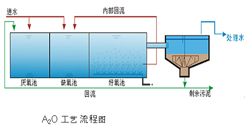 A2O是Anaeroxic-Anoxic-Oxic的英文縮寫,A2O生物脫氮除磷工藝是傳統(tǒng)活性污泥工藝、生物硝化及反硝化工藝和生物除磷工藝的綜合。