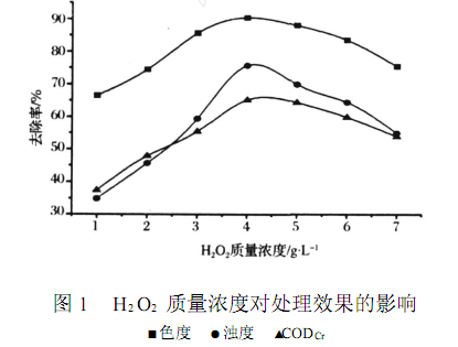 2.1 H2O2質(zhì)量濃度對(duì)處理效果的影響