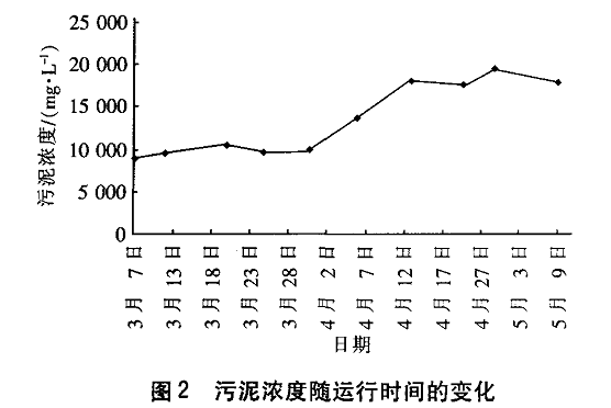 2.1污泥濃度隨運(yùn)行時(shí)間的變化