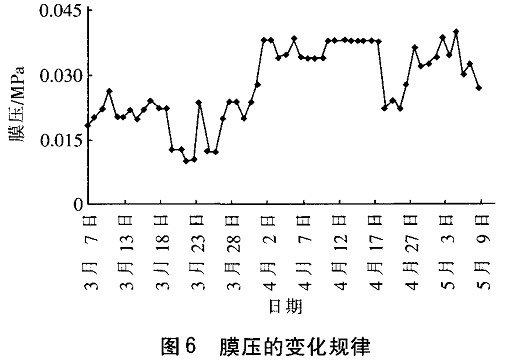 MB R運(yùn)行期問(wèn)的膜壓變化如圖 6所示 。