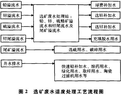 專業(yè)人士經(jīng)過(guò)大量的水處理試驗(yàn)和選礦對(duì)比試驗(yàn)綜合研究,總結(jié)出一條解決礦山選礦廢水的較好方案。以鉛鋅礦為例,其工藝流程如圖2所示。