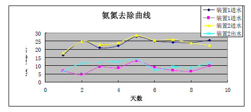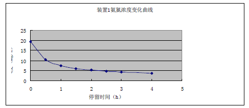 結(jié)果表明,對于裝置2 與裝置3,其氨氮度均在2 小時(shí)內(nèi)被徹底降解。